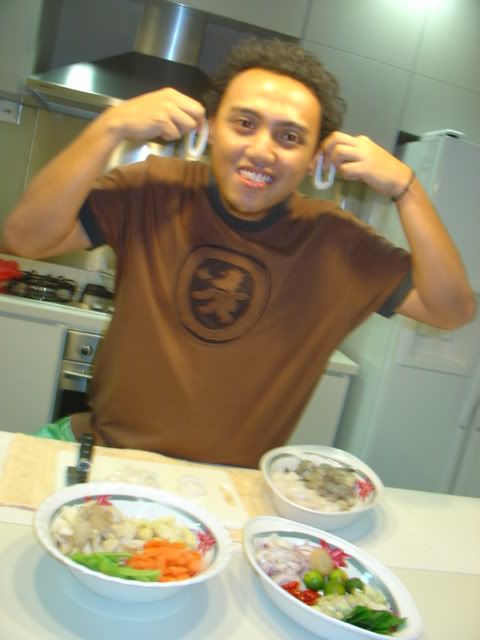 11-year promise to cook for the wife!! eh FINALLY tau! do you know how LOOOONNNNGGGGGG the wife had to wait for this historical moment?! for 9 years, it was, "my mum tak kasi i touch her kitchenlah b." throughout the 10th year, it was, "i very paiseh want to cook in your mum's kitchenlah b." now that he has run out of excuses (semenjak domenjak dah ada rumah sendiri ni), he has no choice but to strip himself of his kitchen virgin status this very day! and i am more than happy cos the feeling *IS* like striking lottery you know! wah piang eh!!