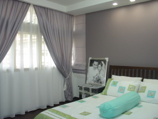 curtains for the bedroom too, to match the purplish-silver wall. no more frantic, towel-clad, 2-metre dashes from room to room for me!